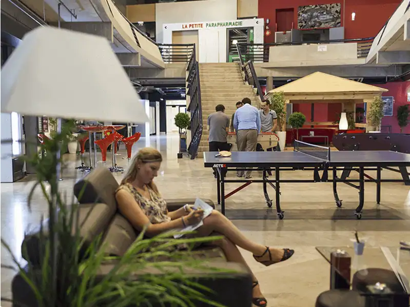 Le lieu propose des espaces détente en intérieur et extérieur et est entouré d’espaces verts, idéal pour se retrouver sous le soleil, seul ou en équipe...