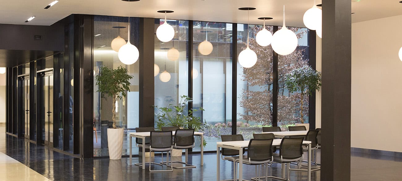 - Modules de bureaux regroupés autour du patio central avec une superficie moyenne de 40 m²